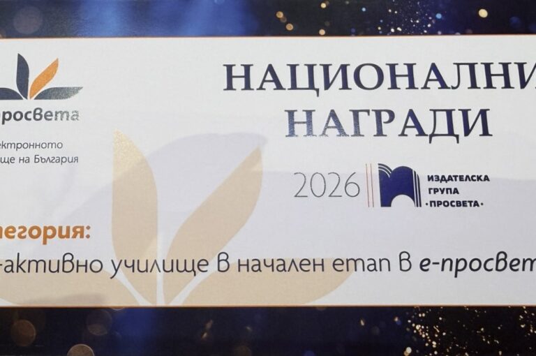 Днес, на тържествена церемония в София, бяха връчени вторите Национални награди на „Е-просвета“. Нашето училище бе удостоено с наградата за Най-активно училище в начален етап…