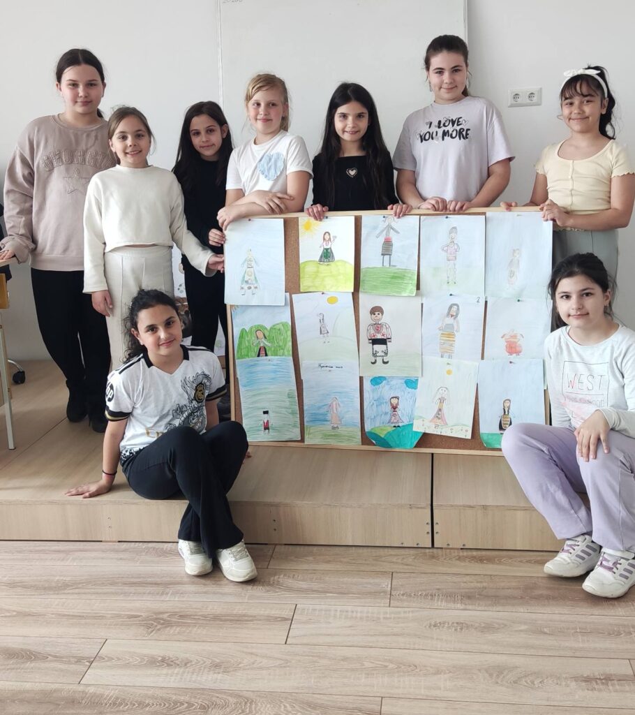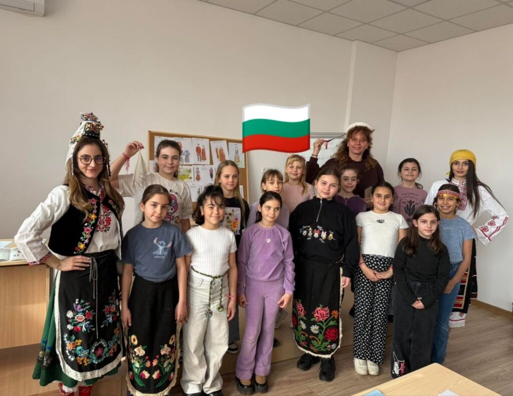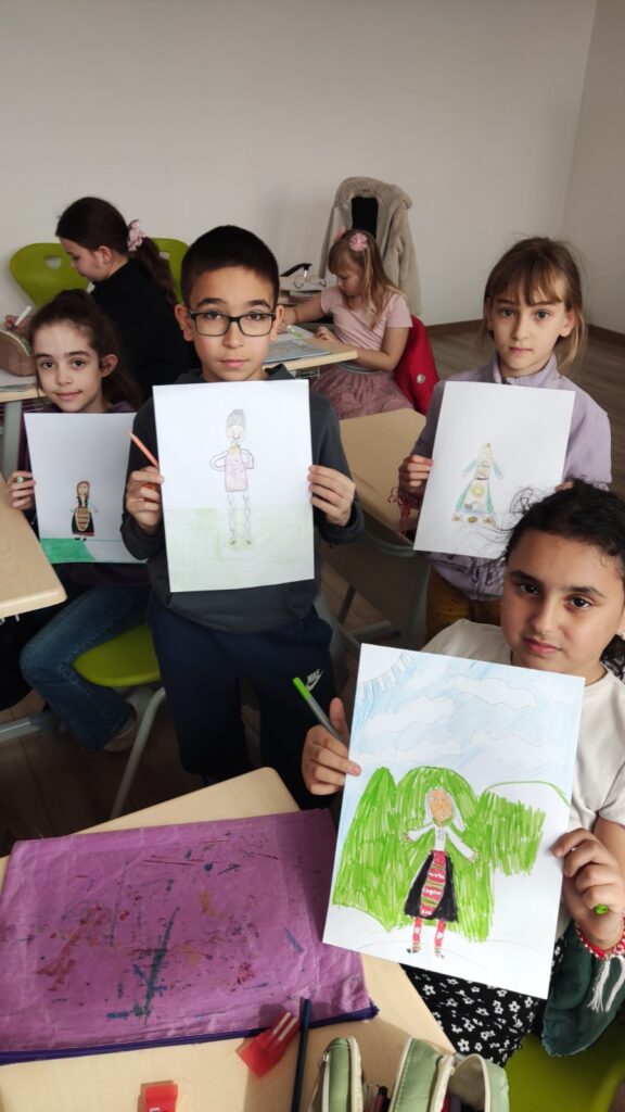 Вдъхновени от ритъма на българската народна музика, третокласниците нарисуваха свои интерпретации на традиционното ни облекло. Часът премина под знака на едно общо послание – да съхраняваме и почитаме българските традиции, обичаи и родното изкуство.