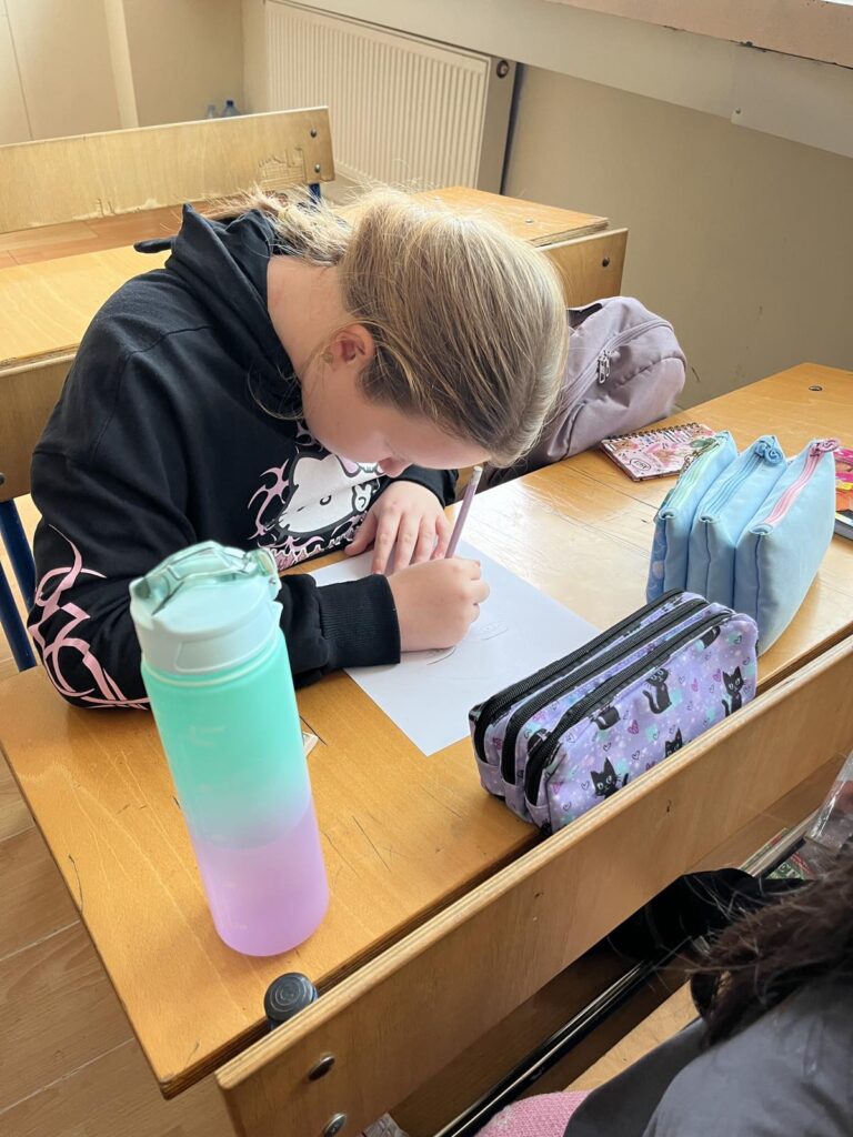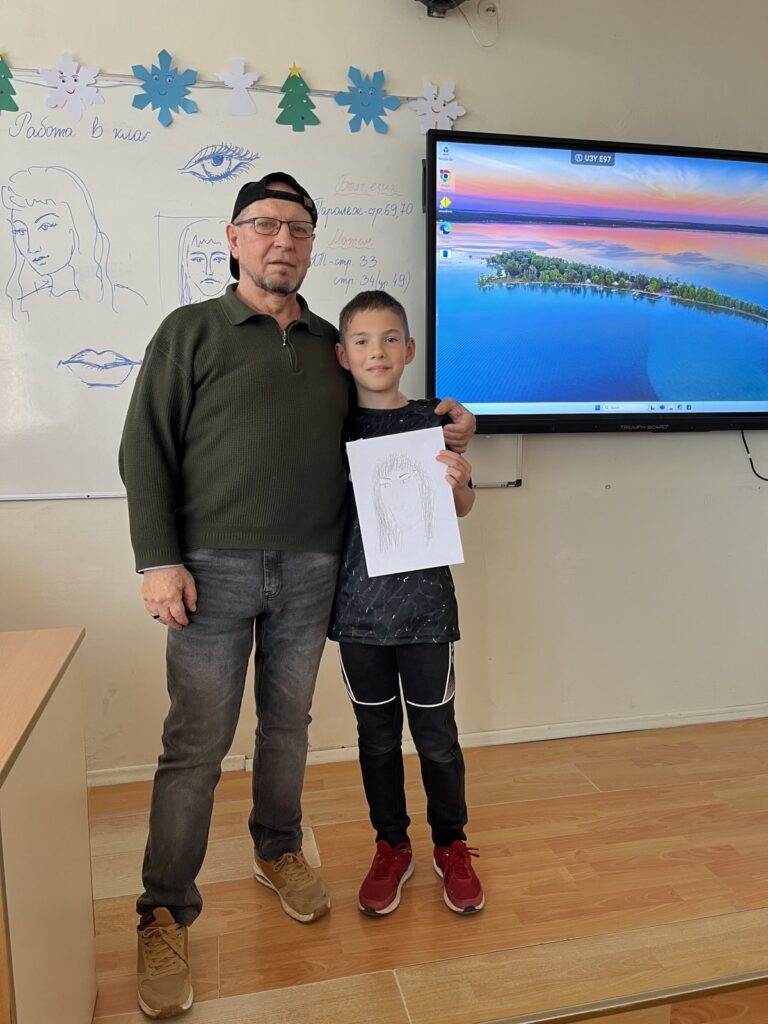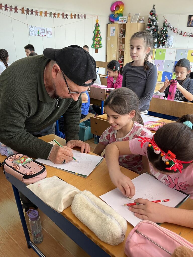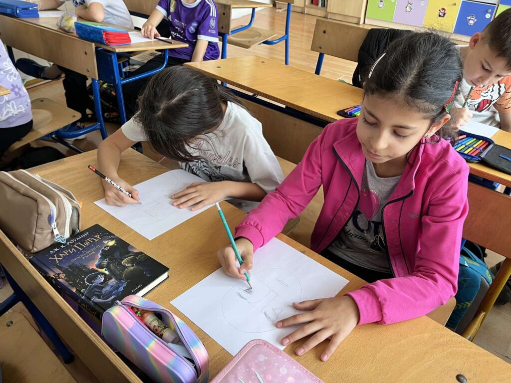 Г-н Цветков показа на децата как се рисува портрет, като им разкри тайните на човешкото лице – кои са основните му части, как се подреждат очите, носът и устата и как с няколко линии може да се предаде израз и настроение. Учениците слушаха с интерес, задаваха въпроси и с радост опитваха наученото. Срещата остави много усмивки, вдъхновение и желание за още творчески изяви.