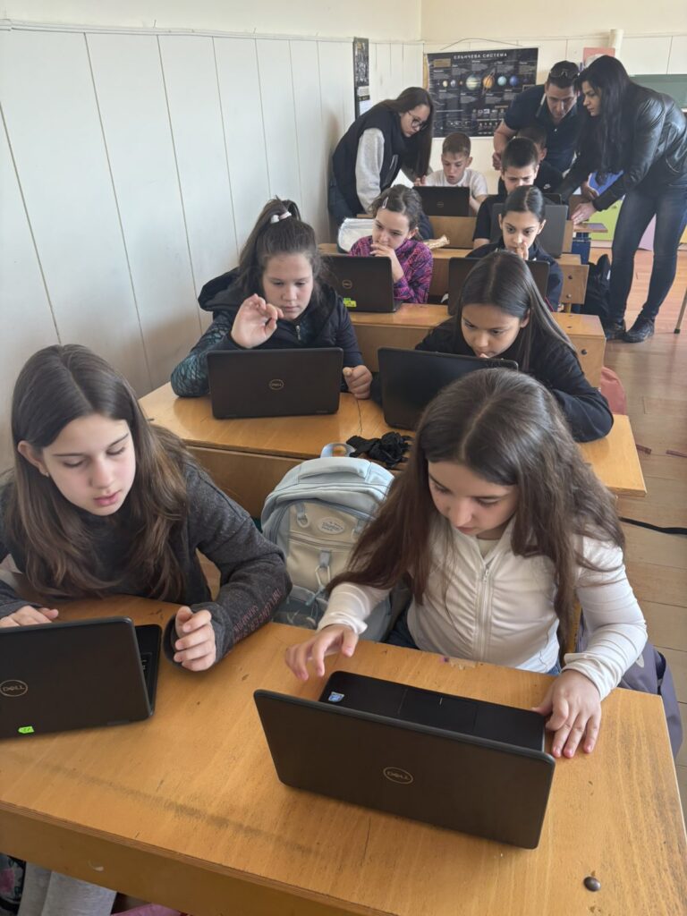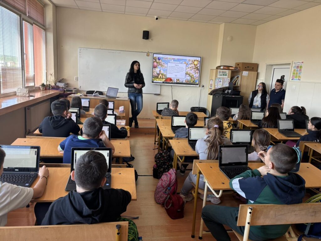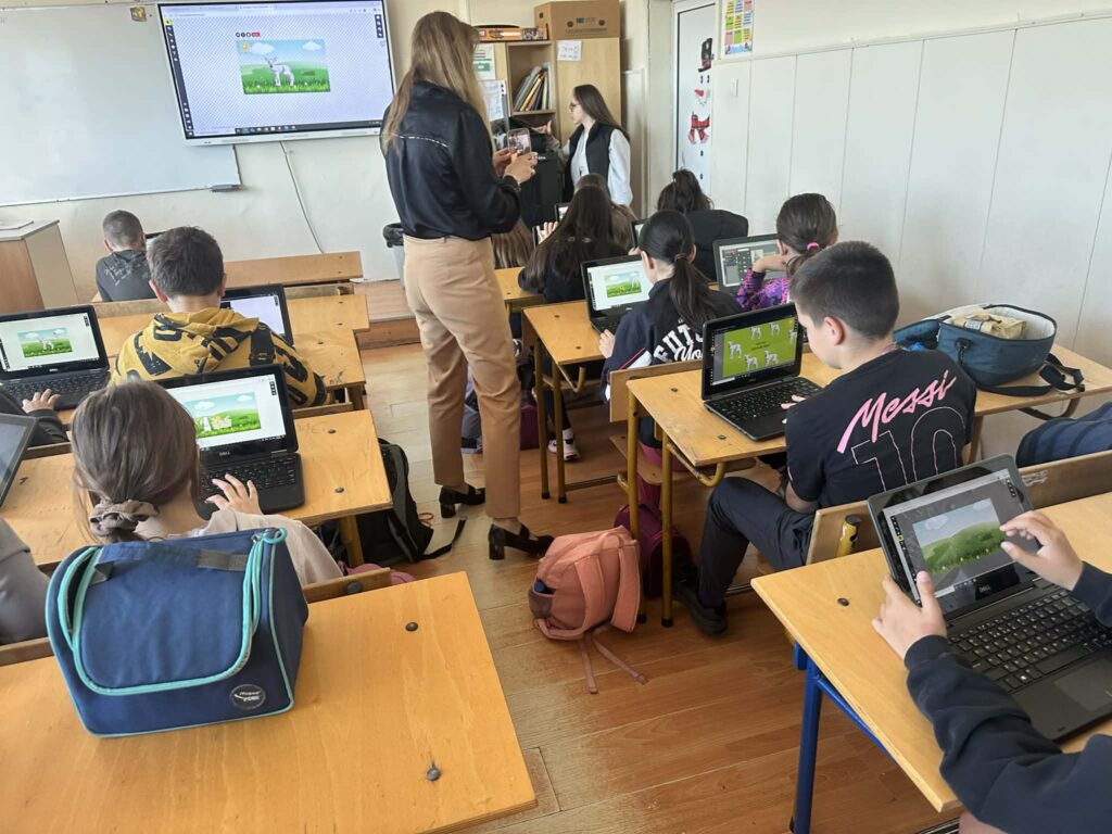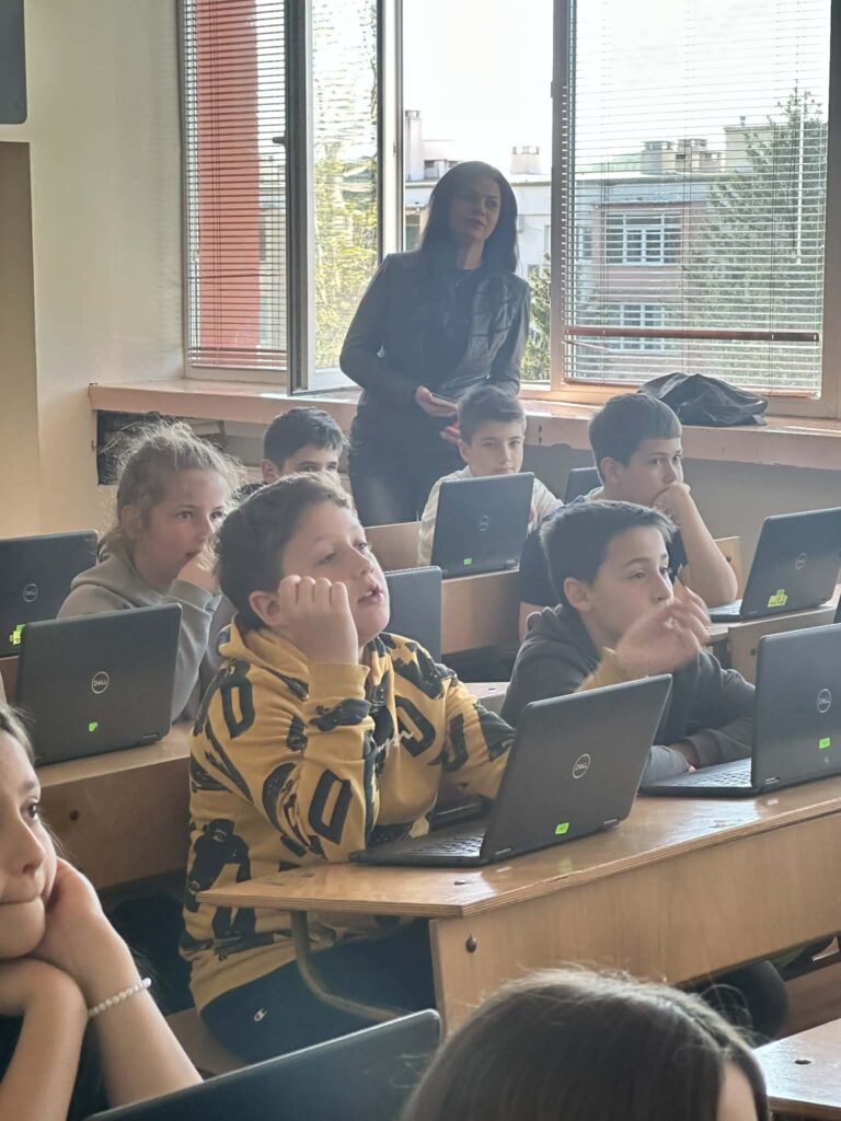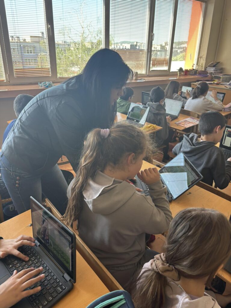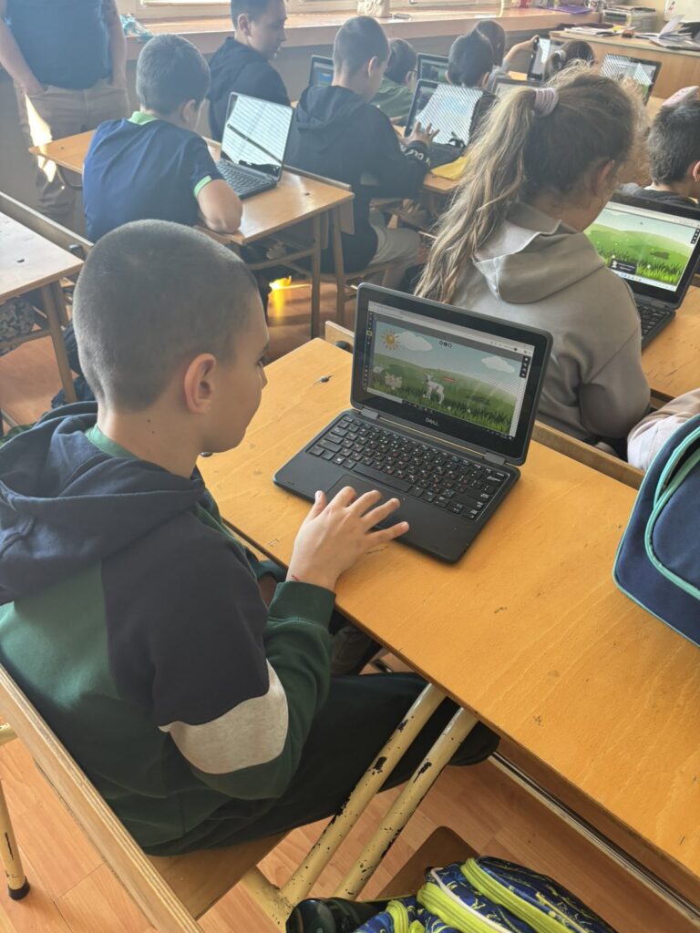 Във втората част на часа децата приложиха своите дигитални умения. С помощта на г-н Йордан Морчев – учител по КМИТ в начален етап, четвъртокласниците използваха метода 1:1 и приложението Sketchpad, за да създадат авторски дигитални картички за Гергьовден.