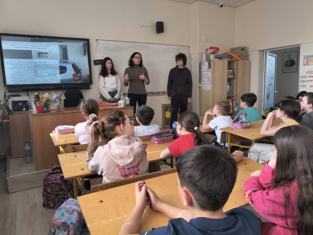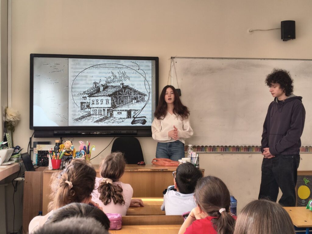 Днес в часа на класа учениците от 4. „а“ клас бяха домакини на вълнуващ открит урок, посветен на 153-та годишнина от гибелта на Васил Левски. Специални гости на четвъртокласниците бяха Александър Николов и Памела Милкова от Езикова гимназия „Проф. д-р Асен Златаров“. Те са част от клуб по екскурзоводство към ЦПЛР Общински Детски Комплекс, Велико Търново с ръководител Катерина Кочева-Токушева.