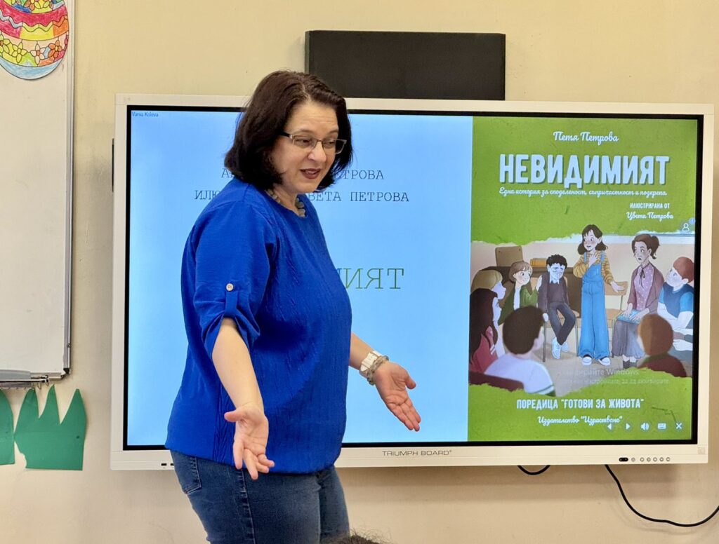 По случай Международния ден на детската книга учениците от 2. а клас се насладиха на вълнуваща среща с авторката Петя Петрова от издателство „Израстване“. Тя представи своята книга „Невидимият“ – част от поредицата за важните неща от живота „Готови за живота“. Мисията на авторката и издателството е да подкрепят децата в техния път към емоционална зрялост, помагайки им да разбират чувства като страх, гняв и благодарност.