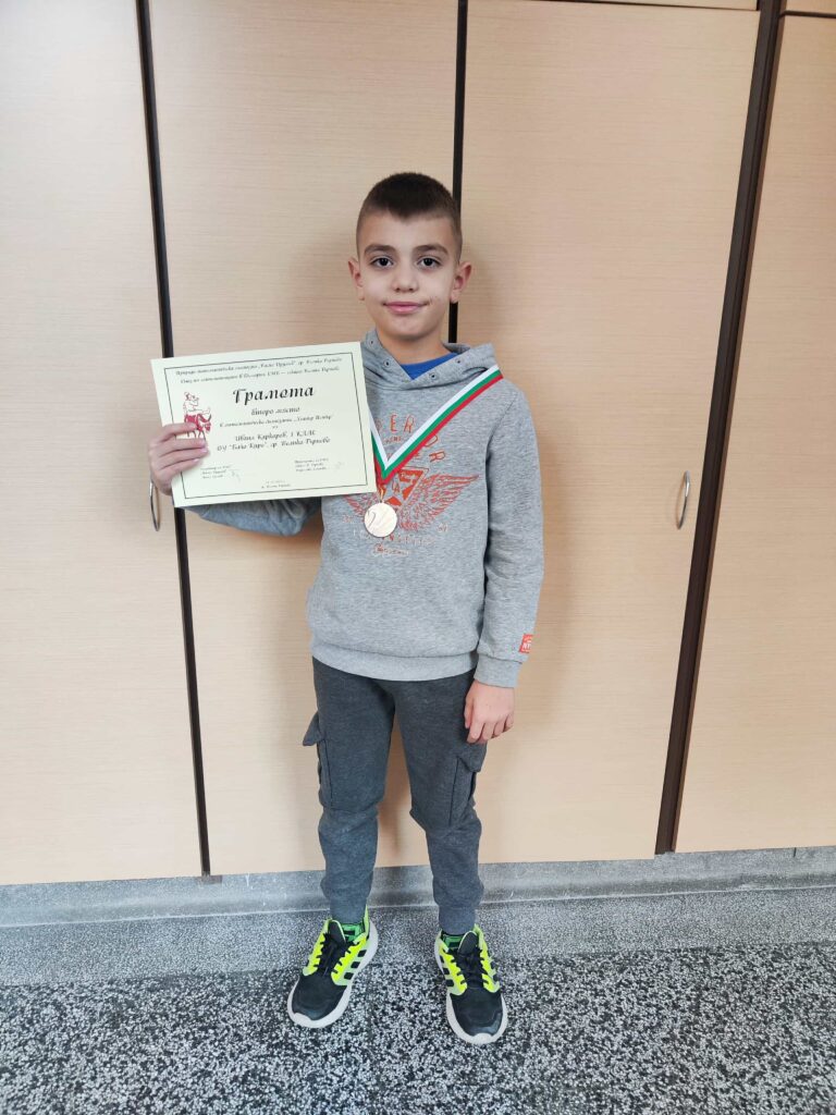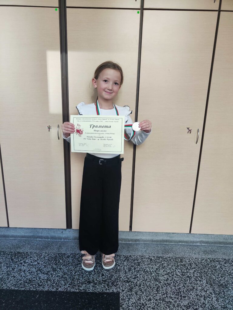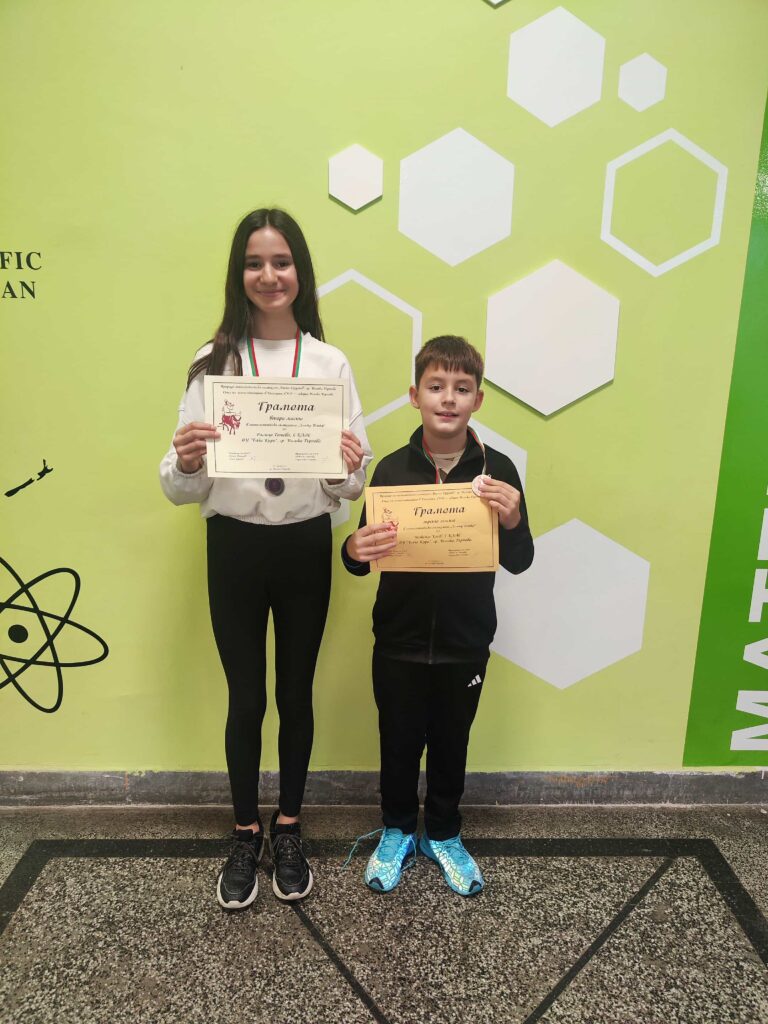 В прогимназиален етап Ралица Тотева (VІг клас) спечели второ място, а Максим Енев (Vд клас) се класира на трето при учениците от V клас.