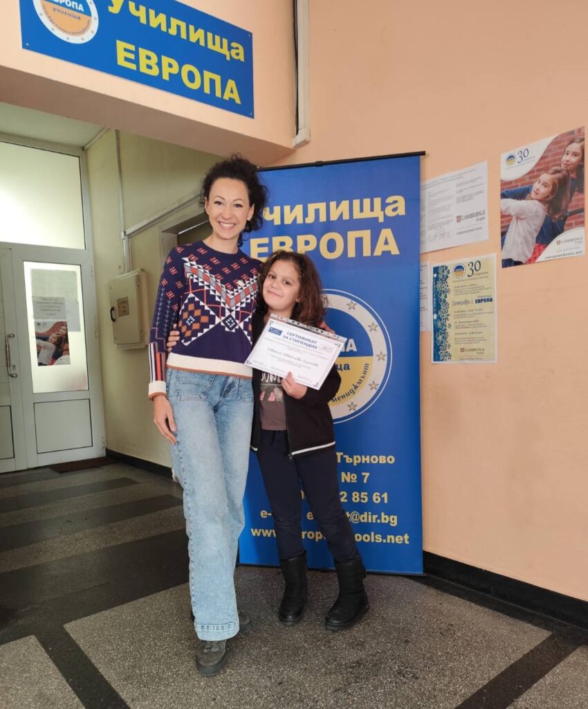 Ивайла вече започна своето обучение по английски език в ниво Pupils 2 в Училища ЕВРОПА – Велико Търново. Предстои ѝ задълбочена подготовка, за да премери сили на юнската изпитна сесия Кеймбридж 2026г. за ниво Starters.